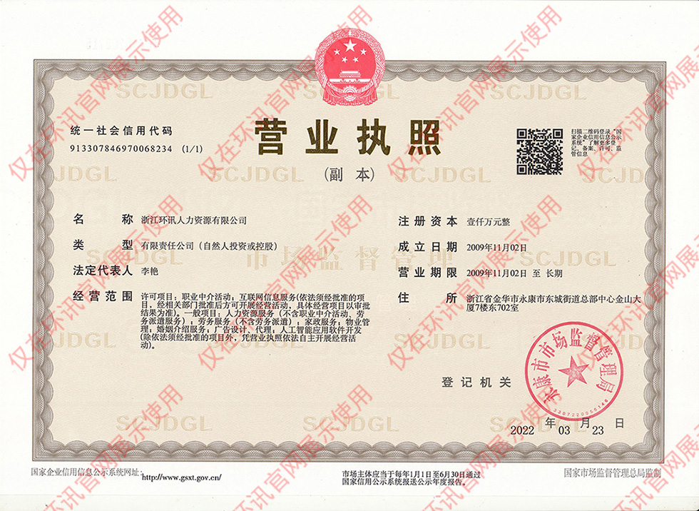 返回首页 《企业营业执照》 《人力资源服务许可证》 《金华人力资源服务机构年度评价》 《永康优秀民营人才中介》 《爱心企业》